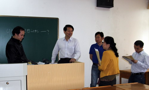 随后,郑书记与随同听课的教务处、思政部的负责同志及教师就推进思政课教学改革进行了探讨。郑书记指出,马克思主义原理是一门比较难讲的课,理论逻辑性较强,要善于利用原理来剖析现实问题及社会现象,将理论与实践结合起来,挖掘教材、整合内容、增加信息量,不断提升思政课的教学效果。