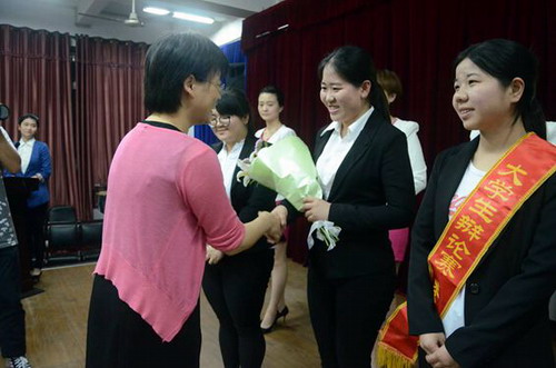 辩论赛结束后,校团委负责同志、全体评委为获奖团队和个人分别颁奖。土建学院、信息学院、会计学院、政法学院、基础医学院、经管学院、外国语学院及电商学院等8个二级学院团委荣获优秀组织奖。信息学院A1311班二辩吴旖旎同学荣获全程辩论赛最佳辩手。