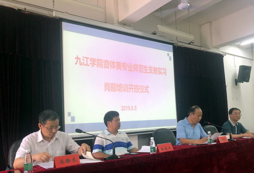 教务处副处长漆晗东传达了《九江学院师范类音体美专业大学生实习支教工作方案》文件精神,教务处副处长张伏龙对实习支教岗前培训做了具体安排。