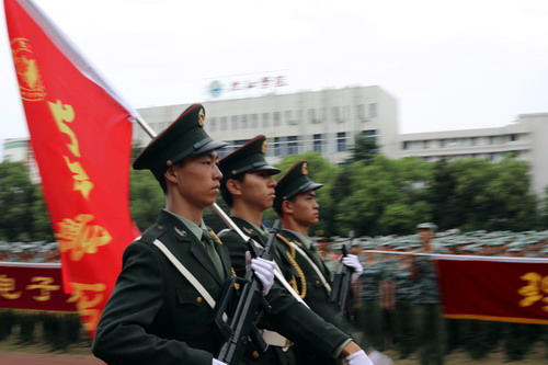 在分列式表演中,同学们踏着整齐的步伐,喊着嘹亮的口号,精神抖擞、气宇轩昂的正步走过主席台接受与会领导及武警九江支队领导的检阅。“竞知向学, 厚德笃行”;“努力学习,振兴中华”……一个个方阵气宇轩昂地通过主席台接受检阅,充分展现出九院学子朝气蓬勃、奋发向上的精神风貌。