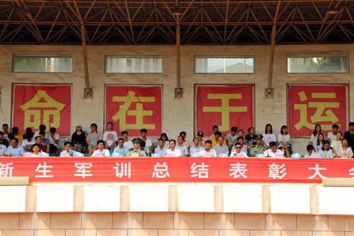 武警九江支队副参谋长、军训旅旅长焦守伟和武警船艇大队大队长、军训旅第四团团长黄宏义分别宣读了军训会操评比结果;学生处处长、军训旅政委刘平和浔东校区管理办书记、军训旅第四团政委魏松分别宣读了内务评比结果。随后,校领导和武警首长为获奖连队代表颁发了锦旗。