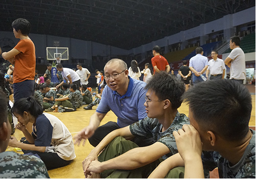 在联欢会现场,陈小林与身边的同学们亲切地拉起了家常,询问近期军训情况,了解同学们初入大学的感受。