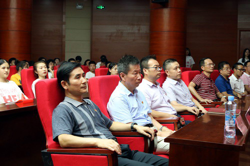 9月9日下午,我校在主校区逸夫图书馆报告厅举行大学生“青春告白祖国”宣讲会,校党委副书记魏立平,校党委委员、宣传部长冯健出席宣讲会,校团委和马克思主义学院负责人,思政课教师代表和学生代表参加会议。