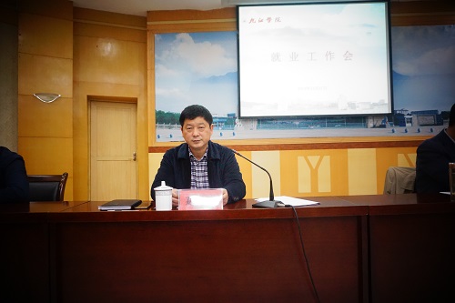招生与就业处处长肖国丰作了《九江学院2019届毕业生就业情况分析报告》。他从2019届毕业生就业基本情况、2019届毕业生就业情况分析、国家统计局江西省调查总队对我校就业方案审核情况分析等方面作了详细的汇报。