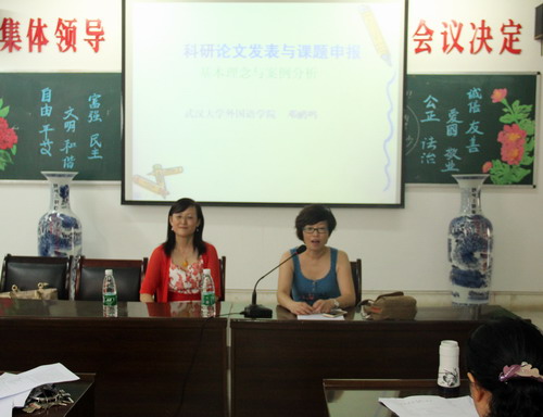 为提高教师教学科研水平,根据我校外国语学院与武汉大学外国语言文学院有关合作协议,7月3日-5日,武汉大学外国语言文学院邓鹂鸣教授、博导应邀到外国语学院为教师们开设教学科研专项提高班,举办3场专题学术讲座和1个研讨会。