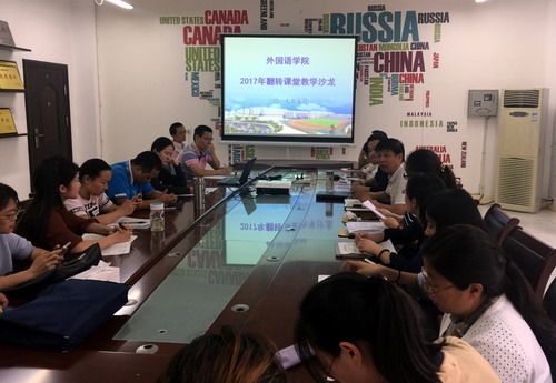 为进一步深化教学改革,提高教学质量,5月17日下午,外国语学院在香远楼219室召开2017年外国语学院“翻转课堂”教学沙龙活动,外国语学院副院长柴克清、教务科科长王伟、各教研室翻转课堂教学团队负责人及成员20余人参加了会议。会议由外国语学院副院长柴克清主持。