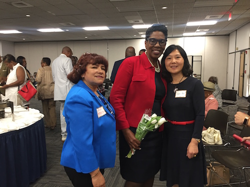 美国当地时间6月2日,萨凡纳州立大学孔子学院中方院长罗其娟、汉语教师钟佳艺应邀出席了萨凡纳查特姆公立学校联盟新任教务长安·莱维特博士的就职见面会。萨凡纳查特姆公立学校联盟董事长切斯特·埃利斯、萨凡纳律师协会会长道格·安德鲁斯以及来自萨凡纳查特姆公立学校联盟的80多名教育官员和学生代表参加了此次见面会。