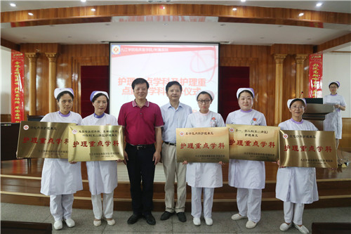 随后,院领导分别为护理重点学科和护理重点建设学科进行授牌,并和护士长亲切握手合影。