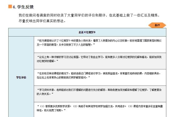 用心的付出,换回了很好的成绩。“走近《红楼梦》”课程运行第一学期,就取得了很好的教学效果。根据课程网站提供的《课程质量运行报告》,课程的各项指标都在联盟课程中居于较高的水平,其中最重要的体现学习效果的两项指标中,在线学习完成率为96.5%,在联盟的248门课中排名第12,见面课学习完成率为86.6%,在同类型的179门课中排名第7。根据网站对选课学生进行的问卷调查,课程的满意度为97.4%,在联盟课程中处于较高的水平。