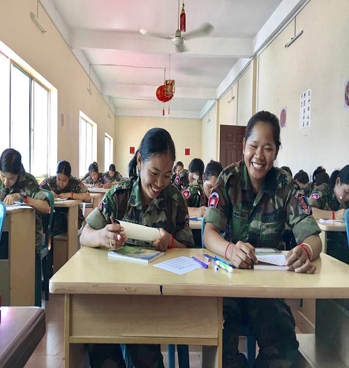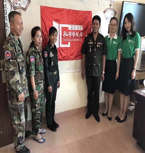 9月29日,为更好地满足金边警备旅广大官兵学习汉语的需求,激发学员对汉字书法艺术的兴趣,柬埔寨王家研究院孔子学院金边警备旅孔子课堂举办“孔子学院日”系列活动之硬笔书法比赛,警备旅衡菲克可待(HENG PHEAK KDEI)中校、凯欧赫姆拉(KEO KHEMRA)少校等出席了本次活动,警备旅孔子学院志愿者教师杨丽丽老师、武晓琳老师以及30名学员参与此次比赛。