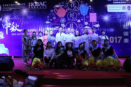 9月30日,由柬埔寨中国港澳侨商总会、柬埔寨香港商会主办的“花好月圆庆中秋、喜气洋洋迎国庆”联欢晚会在金边钻石岛演艺厅隆重举行。中国驻柬埔寨大使馆左文星参赞、李杰参赞、柬埔寨中国港澳侨商总会任瑞生会长、黄瑞华秘书长出席,柬埔寨王家研究院孔子学院中方院长夏修龙和孔子学院本部志愿者教师应邀参加晚会。