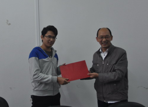 研究生新生陈建强做了表态发言:他首先感谢学院和升阳公司对他学业的支持和鼓励,他会认真学习,潜心研究,圆满的完成研究生阶段的学习,以优异的成绩毕业。