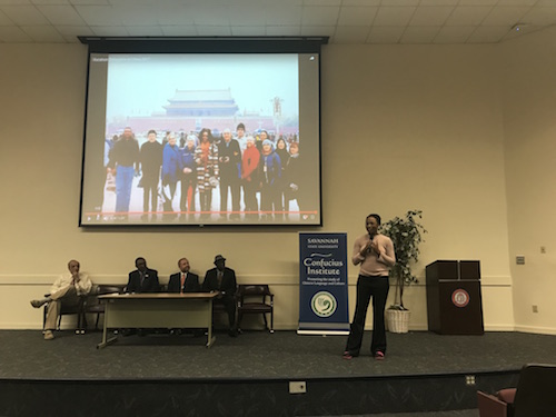 萨凡纳州立大学工程技术教育系助理教授基尚(Dr. Kisha)从教育层面上与现场听众进行了讨论。“在为期两周的访华活动过程中,我们参观了当地的大学和中学,和中国的大学生、中学生还有教育工作者们进行了友好的交谈。中国是一个重视教育,尊重教育者和受教育者的国家。学生们可以用流利的英语跟我们对话,他们对美国,对非裔美国人和我们的文化有着浓厚的兴趣。”