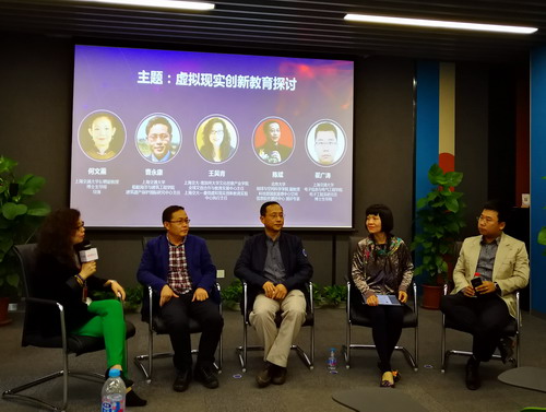 期间,梅教授一行参观考察了上海交通大学虚拟现实VR创新教育实验中心、上海工程技术大学数字媒体体验展示中心、上海曼恒虚拟现实VR交互体验馆,从虚拟现实技术进展到VR教育应用、历史建筑保护、新闻传播、文创产业,以及VR应用实验室的设计组成等多角度、全方位调研了新兴的虚拟现实技术对教育未来发展的变革力量和促进作用。