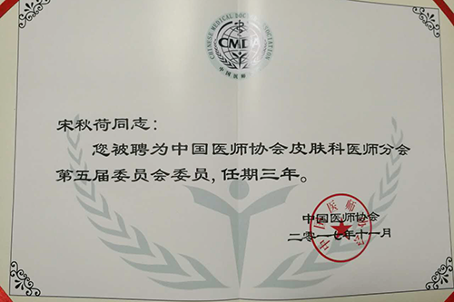 此次会议邀请了来自全国各地的多名皮肤科知名专家学者参加。会上,宋秋荷博士所带团队作了题为“paget样网状细胞增生病一例分析”的学术演讲,受到国内外专家的一致认可与好评。宋秋荷主任被聘为中国医师协会皮肤科医师分会第五届委员会委员。