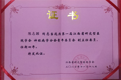 近日,江西省研究型医院学会神经病学分会在南昌顺利召开。经过学会批准、专家推荐和不记名投票选举,临床医学院/附属医院神经内科陈志颖医师当选为第一届江西省研究型医院学会神经病学分会青年委员会副主任委员。