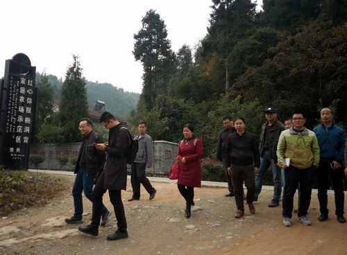 调研组一行先到武宁县杨洲乡凤凰山千年古刹弥陀寺领略了深山清幽的世外桃源人间仙景,再来到杨洲乡森峰村公路沿线的千亩中华红心猕猴桃原种培育基地及红心猕猴桃洞背家庭农场示范区。调研中,我们了解到近年来,杨洲乡加大农业品牌创建力度,逐步改变传统农产品鲜买鲜卖的经营模式,让名不见经传的“山野土货”摇身变成旅游中的新产品,形成“以农促游、以游带农”的良好发展局面。