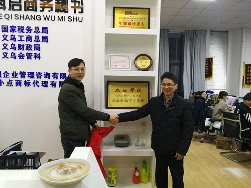 12月8日,陈书记一行在机材学院创业校友周金太、王智强、阳祖明和罗鹏的盛邀下分别赴义乌市齐梦电商有限公司、义乌市云盟企业管理有限公司、义乌市科启商务秘书有限公司和义乌市筑梦网络科技有限公司参加创业就业实习基地授牌仪式。