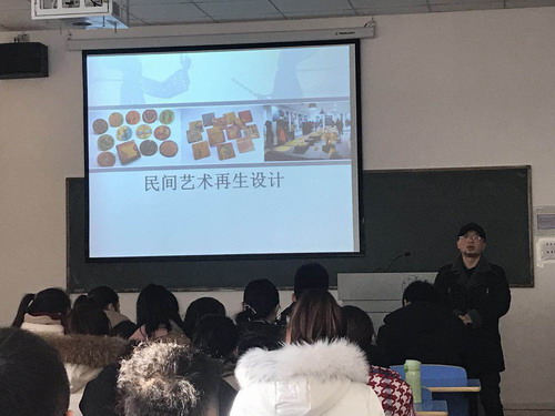 讲学开始,江西省民间文艺家协会理事、市民协副主席王令就从事工匠历程、修水贡砚历史源流、原料择取、形态设计、制作流程、工艺品鉴等一系列生产工序逐步讲解,循序渐进让学生重温了“工匠精神”的弘扬与重塑。目睹了非遗工匠传承人在传承技艺上获得的提升。一幅幅栩栩如生的雕刻艺术作品,诠释了身无立锥之地的他只能在追求手艺的道路上孜孜以求,以超出常人的耐心与严谨、专注与坚守,做好手头的“每一件雕刻器物”,做好每一个细节,朴素的语言、精湛的雕工,娓娓道来的从匠历程让学生对修水贡砚文化有了进一步的认识与了解,同时介绍了中国好手艺的四个新要求:材美、工巧、气韵、时宜。希望大学生在新时代背景下进行手工艺创新设计,课堂中学生认真做笔记,并全神贯注倾听他对贡砚艺术作品的解读。