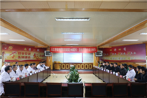 当天上午,在湖口县人民医院,湖口县委县政府张水兰副县长、县卫计委杨翀副主任、湖口县人民医院董海院长等班子成员及各临床科室主任,对临床医学院/附属医院领导和专家表示热烈欢迎!张水兰副县长代表湖口县委县政府对临床医学院/附属医院建院140周年表示祝贺,就临床医学院/附属医院多年来对湖口县卫生工作的大力支持与帮助表示感谢。她说,附院把活动的第一站选在湖口县,充分体现出附院与湖口县的深厚友谊,同时也期盼今后在附院的带领下,湖口县卫生医疗工作能再上一个台阶!