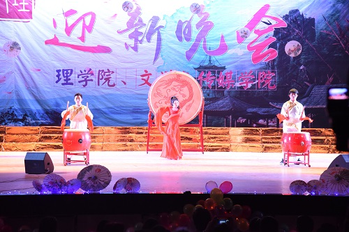 晚会在文传学院和理学院学生联袂演出的洋溢着青春活力的开场舞“文·理的交融与碰撞”中拉开了帷幕。接着,歌舞、相声、朗诵、走秀、乐器演奏等精彩的节目给观众呈现了丰盛的视听盛宴。一支性感而火热的歌舞《十字街头》带我们穿越回民国时代,一场幽默风趣的相声《满腹经纶》引得我们时而欢笑时而沉默,一篇深情的朗诵《唐诗里的中国》更是把我们的思绪引向了唐风烟雨朦胧之中。随后,一曲《平凡的fade》将观众带入了高潮,游鸽乐队的《把夜晚染黑》的出色表演亦是精彩绝伦,文理迎新的走秀虽不能与国际秀相媲美,却也令人激情澎湃。此外,一个特别的助导节目,带领新生们重温军训期间与助教们共同经历过的酸与甜,回忆曾经青涩时光。