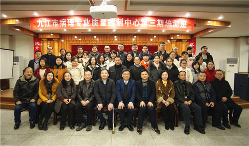 12月15至17日,九江市病理专业质量控制中心第三次会议暨国家级继续教育项目《肾脏疾病病理诊断新进展》学习班在临床医学院/附属医院举行。市卫计委医政医管科朱衣文科长,临床医学院/附属医院胡志坚副院长及基础医学院郑美蓉副院长出席开班仪式。来自各医院病理科的80余名病理专业人员参加了会议。