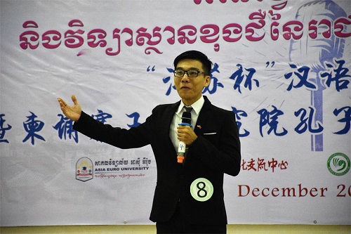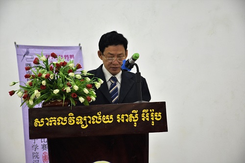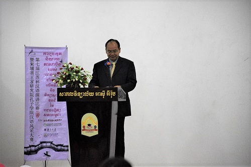 宋春文院士在致辞时说,此次比赛是一次非常好的机会,给柬埔寨汉语学习者和爱好者提供一个交流学习的平台,进一步促进柬埔寨学生对江苏乃至中国的了解,丰富和完善学生们对江苏省和中国的认知。