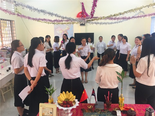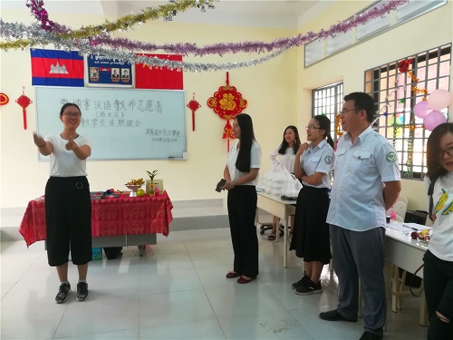 孔子学院暹粒吴哥高中孔子课堂负责人刘振老师在会上致辞,他希望通过此次教学交流联谊活动促进孔院和华校志愿者教师之间的相互了解,增进友谊,分享教学经验,不断提高教学水平