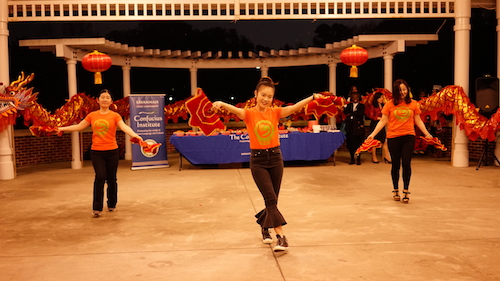 庆祝活动首先由孔子学院外方院长佩吉·布拉德(Peggy Blood)致欢迎辞,向到场的师生、民众表示欢迎和感谢。中方院长罗其娟向大家详细介绍了中国春节的传统民俗及十二生肖的故事。开场舞是由孔子学院老师们表演的手绢舞《好日子》,随后的节目更是一个比一个精彩:中国传统乐器葫芦丝独奏《月光下的凤尾竹》清新优美,太极功夫扇《中国功夫》柔中带刚,招招令人目不转睛,拍手叫好,中国传统戏曲《黄梅调》韵味十足,一曲《最炫民族风》更是让现场观众随着旋律一起舞动,好不热闹,独舞《侗乡之夜》优美动人的舞姿与灵动欢快的韵律尽显中国西南少数民族浓郁的风情与中国舞蹈的惟妙惟肖,赢得了现场观众的阵阵掌声和欢呼声。