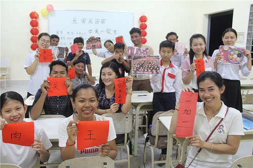 3月2日,节日的气氛尚未褪去,元宵佳节就悄然而至,为了让学生感受中国元宵节的喜庆气氛,了解中国元宵节日文化,同时促进师生之间的交流,柬埔寨孔子学院暹粒吴哥高中孔子课堂举办了以“元宵庆团圆,中柬一家亲”主题文化活动。