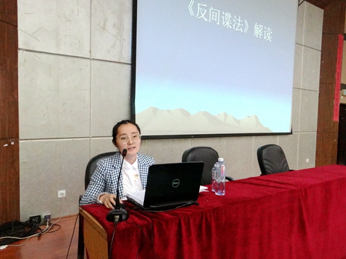 讲座邀请了省国家安全厅法制办戴静科长为大家解读《中华人民共和国国家安全法》和《中华人民共和国反间谍法》。戴科长结合多年的工作实践,对二部法律条款进行了诠释,并结合真实案例,播放有关视频让大家进一步知道如何严格遵守有关法律,防范危害国家安全行为的事情发生。