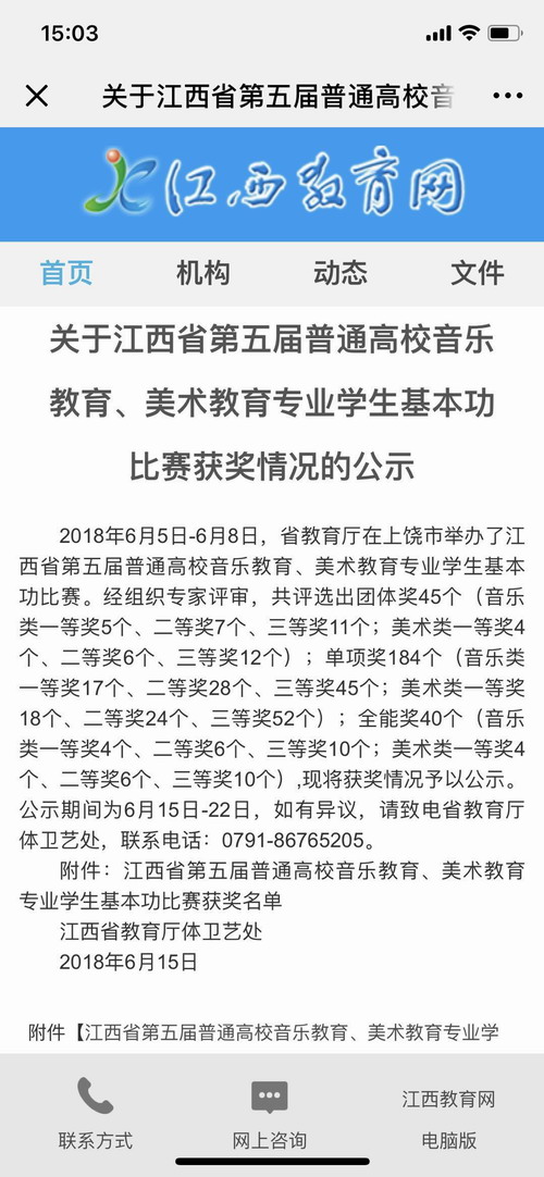 6月5-8日,由江西省教育厅主办,上饶师范学院承办的江西省第五届普通高校美术教育专业学生基本功比赛在上饶师范学院落下帷幕,来自全省本专科的22支代表队参赛,我校美术学专业A1581班王荟杰、姬锐、汪军伟3名同学代表学校参加比赛,并夺得团体二等奖。