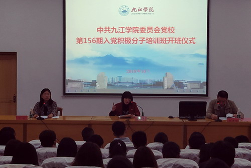 为深入学习贯彻党的十九大精神,加强入党积极分子对党的基本知识、基本理论的学习,从源头上确保发展党员质量,10月22日晚,我校第156期入党积极分子培训班开班仪式在图书馆主馆一楼报告厅顺利举行,来自外国语学院、电子工程学院、旅游与国土资源学院、化学与环境工程学院、信息科学与技术学院、经济与管理学院、电子商务学院218名入党积极分子参加了本次开班仪式。党校常务副校长李苏琴出席开班仪式并讲话,马克思主义学院余建明副教授为全体学员讲授开班第一课,党校办公室副主任陈娟老师主持开班仪式。