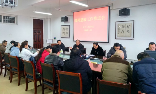 孙小明书记首先强调:习近平总书记在全国高校思想政治工作会议上强调,要用好课堂教学这个主渠道,各类课程都要与思想政治理论课同向同行,形成协同效应。课程思政是党中央及学校党委高度重视、大力推进的事情。学院应该将此事尽快落实到位,一月份必须拿出具体方案,下学期二月底一开学就要施行。目前我们只是试点,做的好的要作为学习典型,还要奖励,计划于2019年秋季学期开始全面覆盖、全院施行。