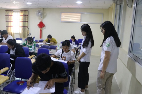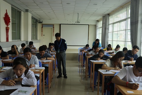 考试当天,柬埔寨皇家科学院孔子学院为参加本次考试的全体考生营造了一个公平、公正、舒适、整洁的考试环境,各项考试流程分工明确,各级主考和监考教师严格按照考试流程进行考试,候考室和考场秩序良好。考试过程中,柬埔寨皇家科学院孔子学院中方院长柴克清带领公派教师户社芳、黄青山、马剑、孙海瑞等进行巡考,及时了解考场动态,以保证考试的顺利进行。