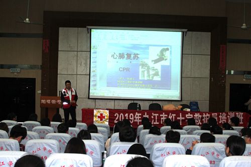 此次培训班邀请九江市红十字会杨新文老师前来授课。讲座中,杨老师采用理论讲授、操作讲解、实践操作相结合的方式,详细讲授了常见意外及突发事件的处理、 单人徒手心肺复苏操作流程、创伤救护的现场急救处理及相关的实用急救知识症与突发伤害救护等基本知识和基本救护技能,尤其在心肺复苏救护操作课上,详细讲解了心脏复苏术的重要性以及实施的主要步骤以及成人、婴幼儿等气道异物梗阻的急救方法进行了讲解和演示。心肺复苏救护操作上,学员们踊跃参加,现场模拟演示了胸外按压以及口对口人工呼吸的具体操作等急救技术,现场进行互动,通过亲自操作人体模型,进一步巩固了所学知识,掌握了现场急救的基本技能。