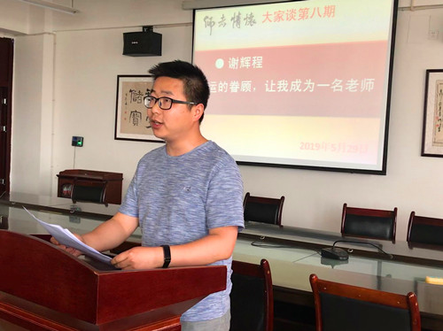 谢辉程老师讲述的题目是:《命运的眷顾,让我成为一名老师》,主要是感慨自己能够成为一名大学老师,尽管不是有意而为之,但是回过头来发现自己是幸运的!这种积极的人生态度,讲出来,对老师有启发作用,对学生也可以算作一种人生观的教育。他说:不知道自己有什么经历和感悟值得宣讲,一切都显得那么地平常!工作15年来,做的最多的就是教学,付出最多的就是想方设法讲好每一堂课,仅此而已!特别朴实的一段话,道明了教师职业道德最核心的部分,道明了师者情怀最有价值的体现!谢辉程老师的讲述基本上都是围绕着一门心思搞好专业教学的过程及心路历程,其师者情怀时时处处体现在他这种一门心思的行动之中。谢辉程老师在讲述最后感慨道;我已经是一名合格的大学老师,我已经深深地爱上了教育事业,我愿意为她付出青春和热血。此时此刻,我再次感到,我是多么地幸运啊!我永远感谢命运对我的眷顾!