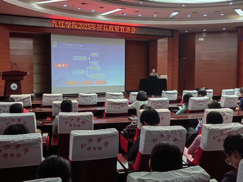 当天,学生工作处还在三食堂广场举行2025年征兵政策现场咨询活动,九江军分区、濂溪区人武部相关负责同志亲临现场为有参军意向的同学们答疑解惑,活动还吸引了濂溪区融媒体的关注并到场采访报道。