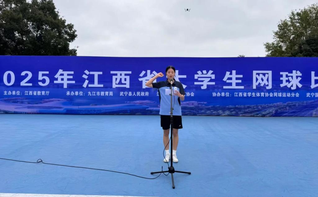 在9月14日-19日由江西省教育厅主办,九江市教育局、武宁县人民政府、江西省学生体育协会承办的2025年江西省大学生网球比赛中,九江学院网球队熊江源同学一路过关斩将、连克强敌,最终赢得女子甲组冠军,实现了九江学院在该项目上“零的突破”。这一突破不仅是九江学院在本项赛事中的重大成果,更是学校网球运动发展史上的光辉里程碑。