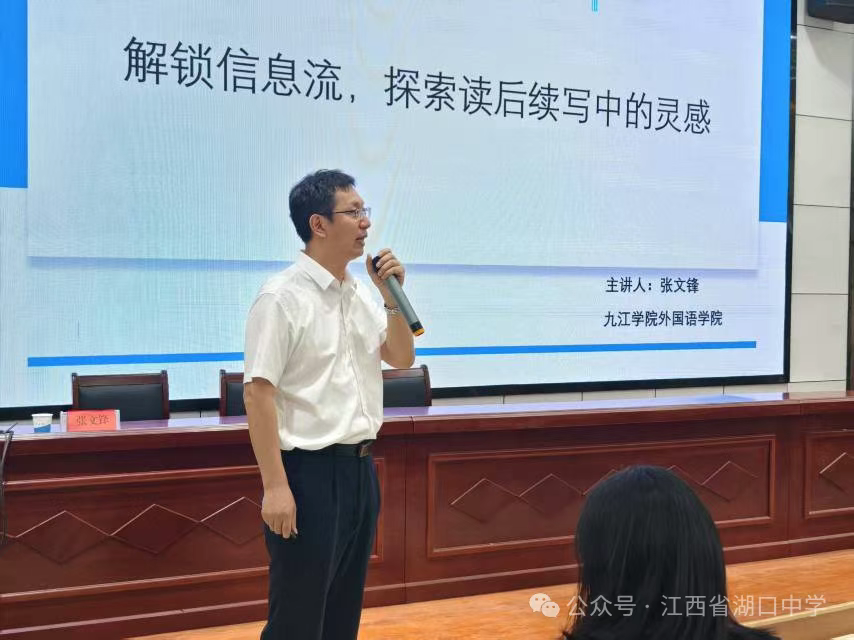 作为学校协同提质专家组成员,张文锋积极发挥专业优势,多次深入基础教育学校开展教学专题讲座。2023年11月,他在湖口中学举办的“解锁信息流,探索读后续写中的灵感”讲座,用生动案例和深入浅出的讲解为教师们带来新思路和方法,现场掌声不断。一位中学教师说:“张老师的分享实实在在,解决了我们很多教学困惑。”此外,他还主持完成市厅级课题4项,发表EI源刊论文1篇,实现教学与实践深度融合。