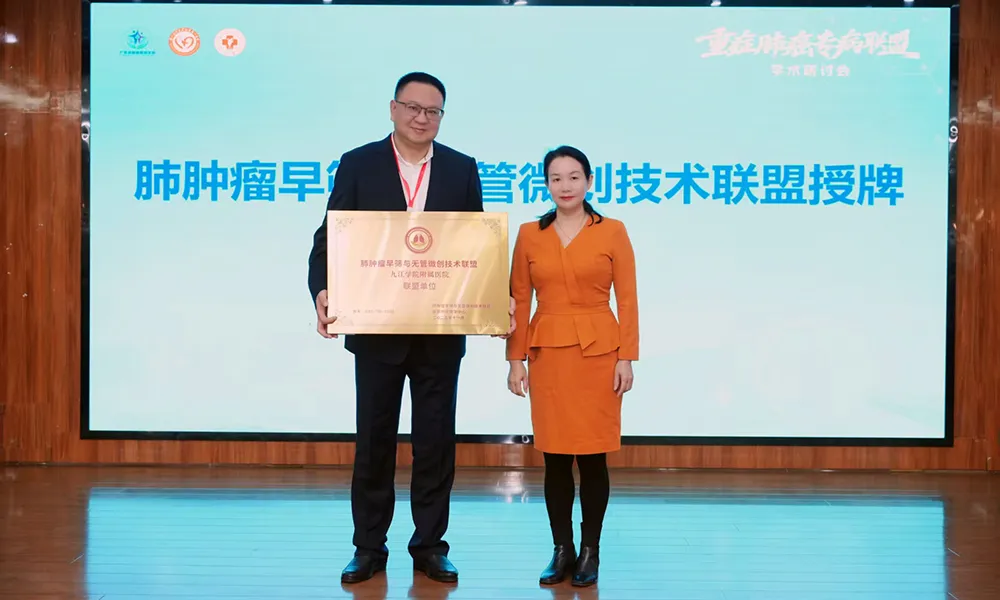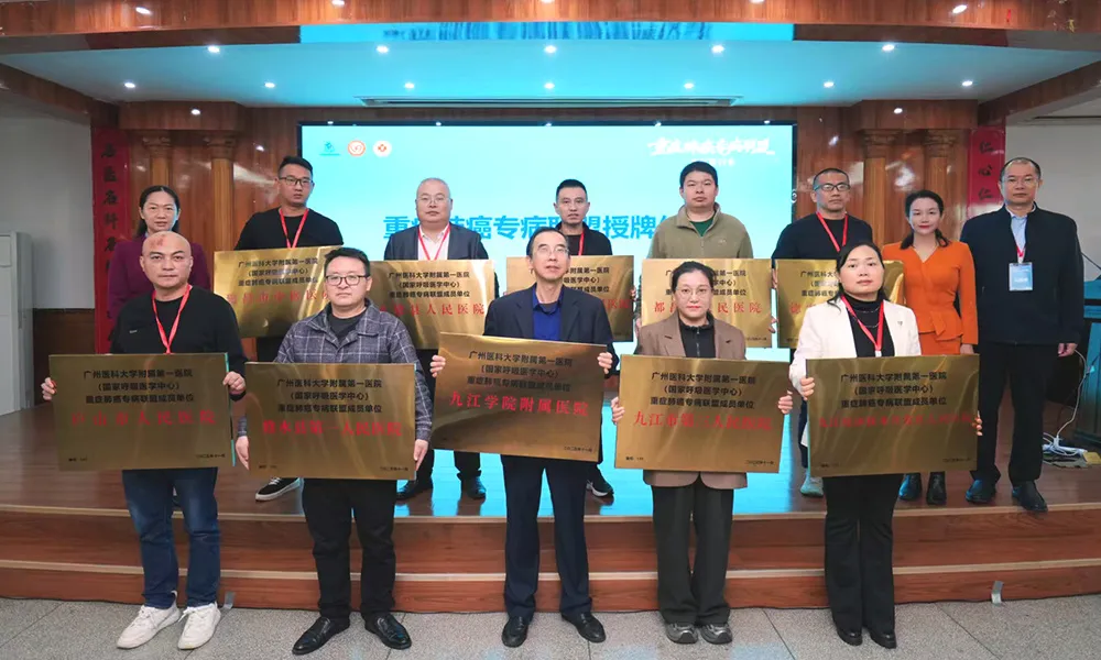 11月7日,由广东省胸部疾病学会主办,九江学院附属医院承办,广州医科大学附属第一医院协办的重症肺癌专病联盟学术研讨会,在九江学院附属医院行政楼九楼会议室举行。九江学院党委委员、副校长雷志强,九江学院医学部主任、九江学院附属医院党委书记殷小平,广州医科大学附属第一医院纪委书记张曼莉等出席大会并致辞,会议由九江学院附属医院副院长童建林主持。广州医科大学附属第一医院临床科室专家团队、九江学院附属医院及各县区医院相关科室专家及业务骨干参会。