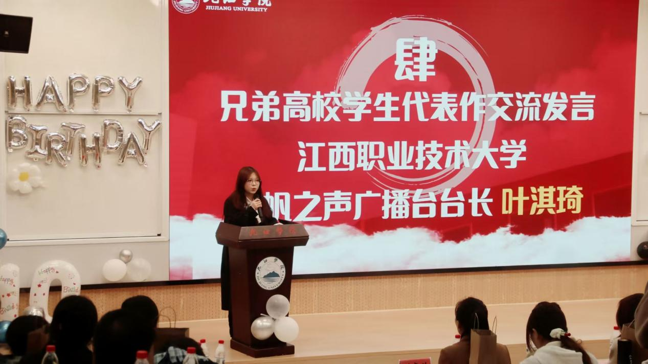 来自三所兄弟院校的学生代表相继发言,表达了对记者职业精神的坚守与对校园新闻宣传工作的担当,并期待与九江学院进一步加强交流、相互学习、共同成长,在追求真实、传递美好的道路上并肩前行。