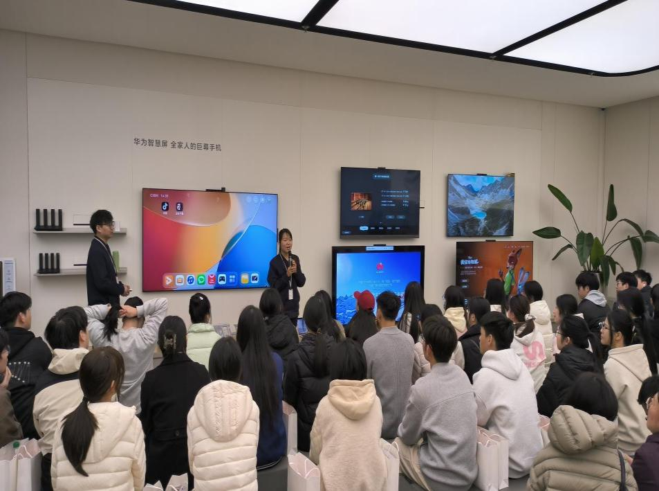 深圳慧通商务有限公司,成立于2004年,是华为投资控股有限公司全资子公司,承接华为终端BG面向消费者及合作伙伴零售服务业务,历年来吸收我校毕业生69名,是长期友好合作关系的用人企业。本次活动中,师生参观了位于九江市招商花园城核心区域的华为智能生活馆,详细了解其产品体验、全屋智能、售后服务等各功能模块的运营模式与岗位分工,实地感受企业工作环境与业务流程。