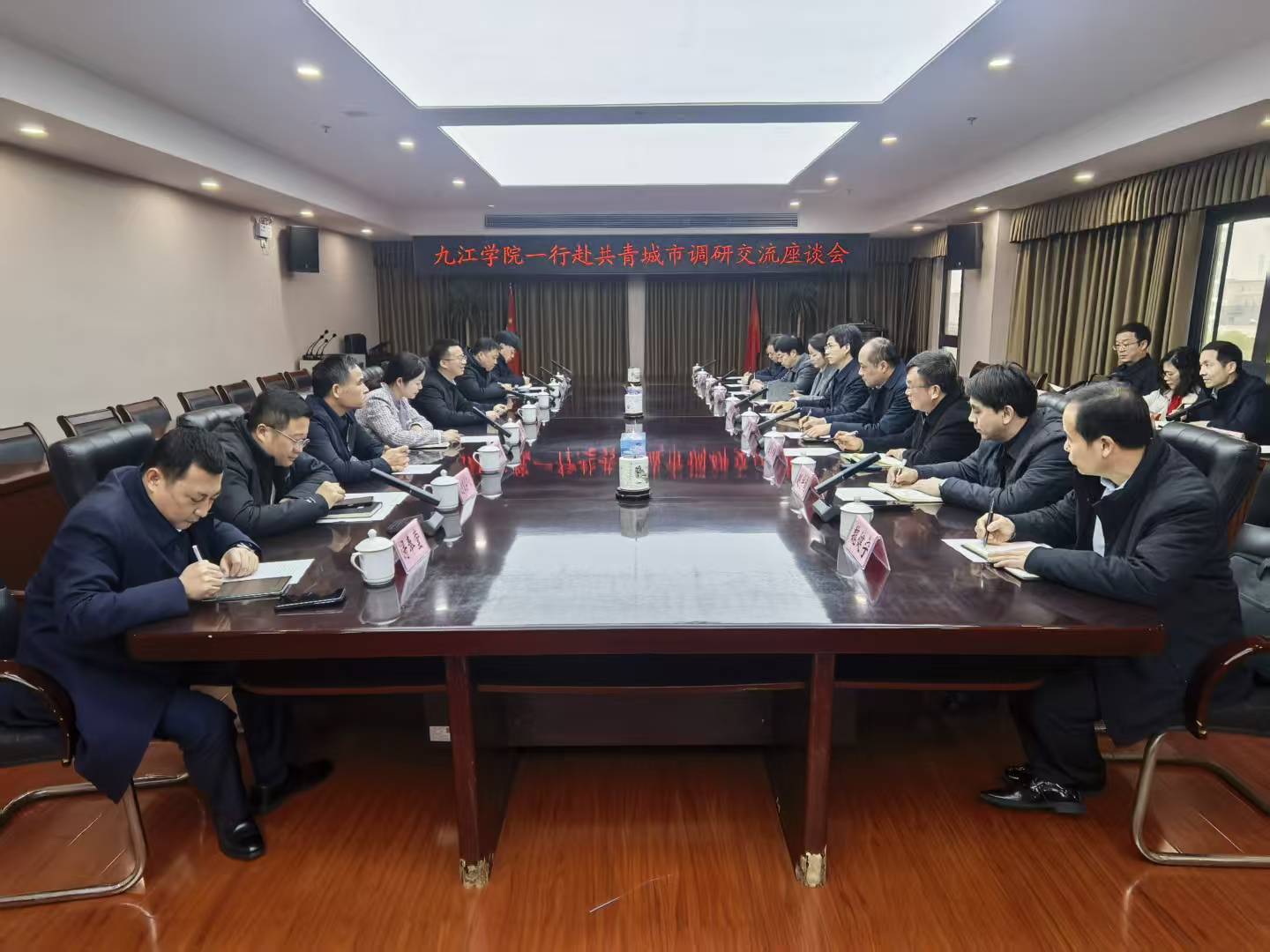 在交流中,查振华详细介绍了九江学院的基本情况,以及学校以科技服务领军团为引领的“十百千”社会服务工作体系,着力构建“科技团+县区”新模式及学校科学研究、社会服务及成果转化等相关工作。他表示,作为赣北地区唯一一所硕士学位授予单位高校,九江学院将结合共青羽绒服装、低空经济、平台经济三大主导产业发展定位,立足学科、人才、科研优势,重点从产业升级、创新驱动、人才培育三个方面深化校地合作,做到精准对接、精准赋能、精准服务。他表示,有校地双方的同心协力、务实笃行,双方定能深化校地融合、实现优势互补,在服务共青城经济社会发展中,推动校地合作再上新台阶,共同书写共青城高质量发展和九江学院内涵建设的崭新篇章。